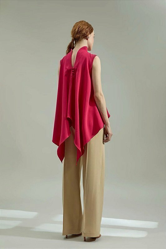 Peça ideal para quem busca um visual sofisticado, moderno e cheio de movimento. Com um design diferenciado, onde o corte é mais longo atrás, a blusa oferece um efeito assimétrico que adiciona um toque de elegância e originalidade ao look. Confeccionada em crepe premium, um tecido de alta qualidade conhecido por sua textura suave e caimento impecável, a blusa garante conforto e um visual refinado. Disponível na cor cereja, a blusa oferece versatilidade para diversas ocasiões.