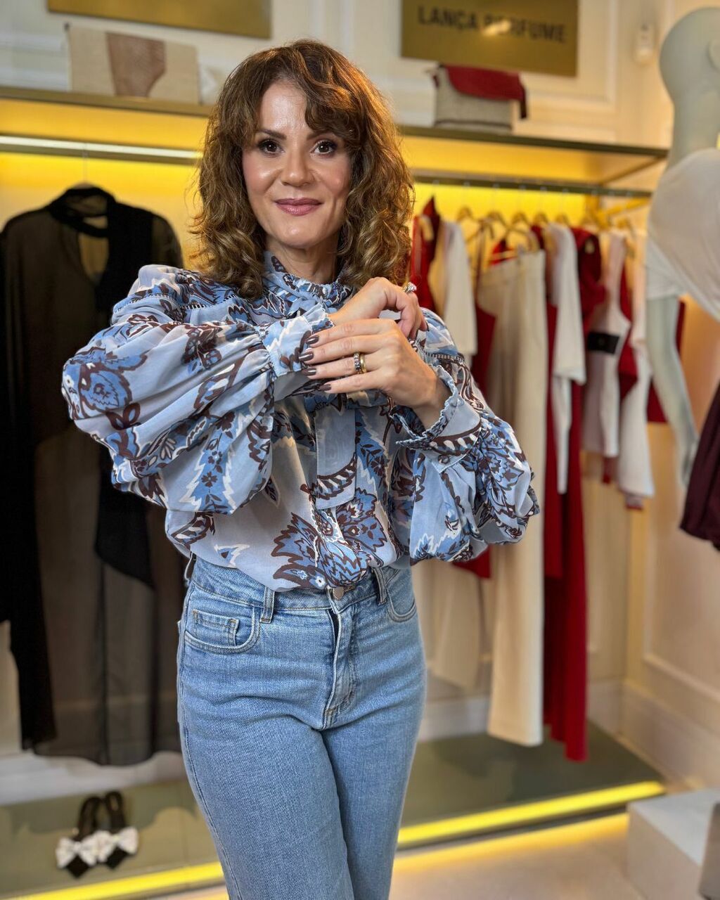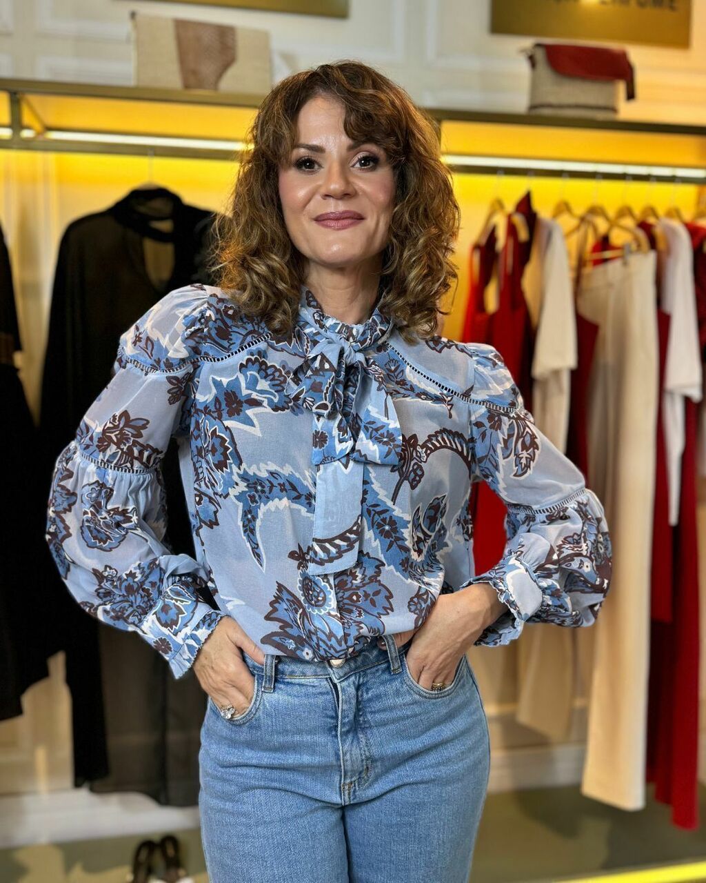 Elegância e leveza definem esta camisa em chiffon estampado. Com modelagem fluida e toque suave, ela traz sofisticação ao visual com sua estampa exclusiva e caimento impecável. Ideal para compor looks refinados, seja no trabalho ou em ocasiões especiais. Use com alfaiataria para um visual clássico ou combine com jeans para um toque contemporâneo.