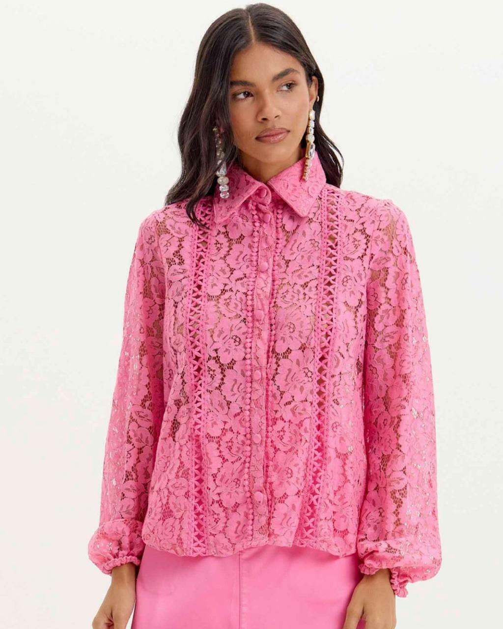 Delicada, elegante e cheia de charme. A camisa de manga longa em renda é a escolha ideal para quem deseja um visual sofisticado com um toque romântico. Com transparência sutil e acabamento refinado, ela transforma qualquer look em uma produção especial — perfeita para ocasiões que pedem estilo e feminilidade.