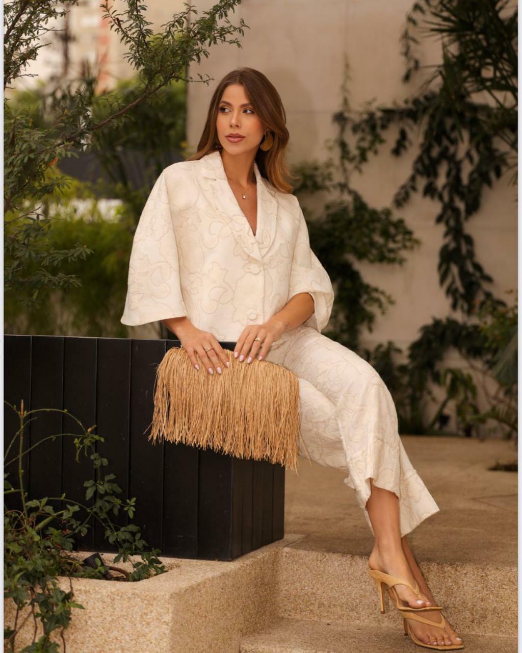 O casaqueto em linho misto une sofisticação e leveza em uma peça atemporal. Com mangas raglan que garantem caimento confortável e moderno, ele se destaca pelo bordado delicado com pontos de brilho, que adiciona charme e elegância ao visual. Versátil, é ideal para complementar produções do dia a dia ou looks especiais, trazendo um toque refinado em qualquer ocasião.