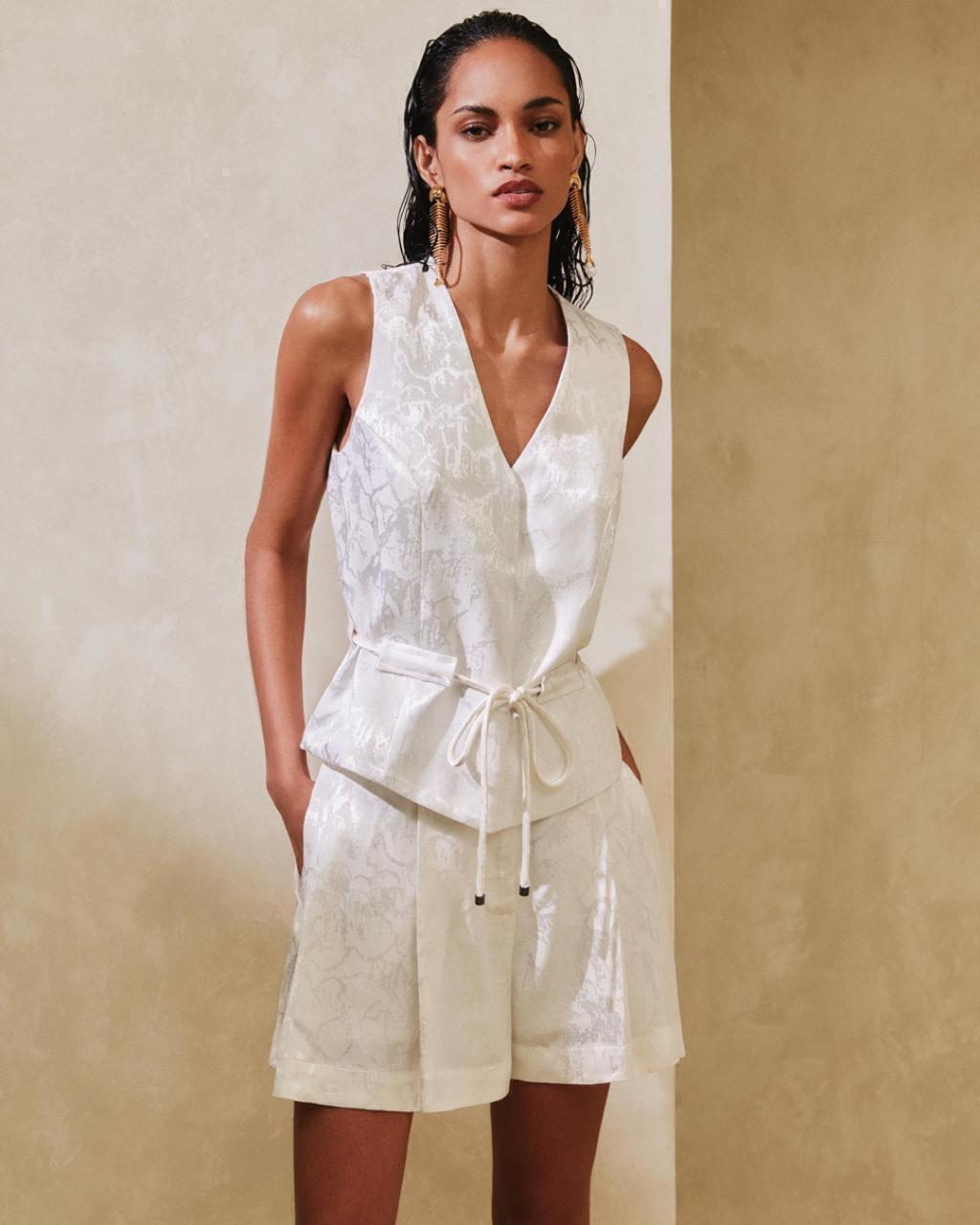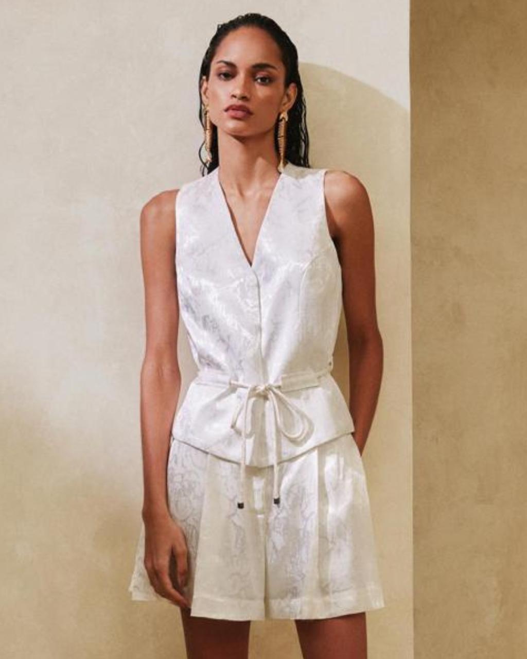 Confeccionado em jacquard de viscose, este short une conforto e sofisticação. O tecido encorpado realça o caimento das pregas frontais, garantindo um visual elegante e fluido. Possui cintura média com amarração ajustável, que valoriza a silhueta com delicadeza. Ideal para compor produções leves e refinadas para o dia a dia ou ocasiões especiais.